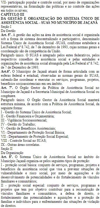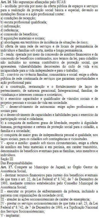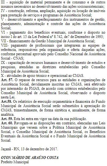 • LEI 276/2017 - Dispõe sobre o Sistema Único de Assistência Social - SUAS do Município Jaçanã/RN