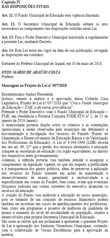 LEI 278/2018 - Fundo Municipal de Educação – FME, instrumento de captação e aplicação de recursos