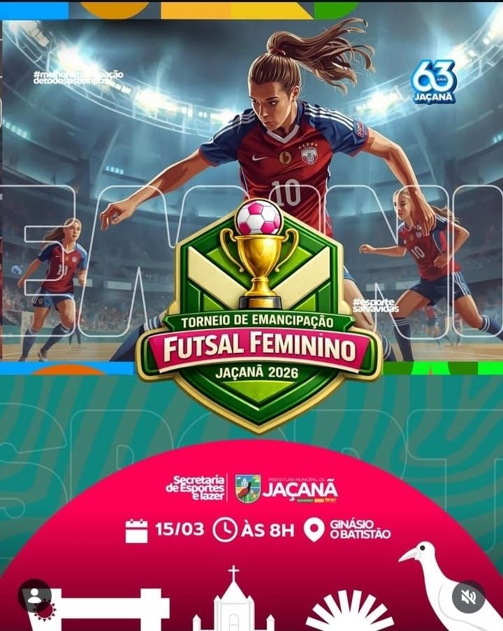 Em comemoração aos 63 anos de Emancipação Política de Jaçanã, a prefeitura Municipal, por meio da Secretaria de Esportes e Lazer, realiza o torneio de Emancipação de Futsal feminino 2026.